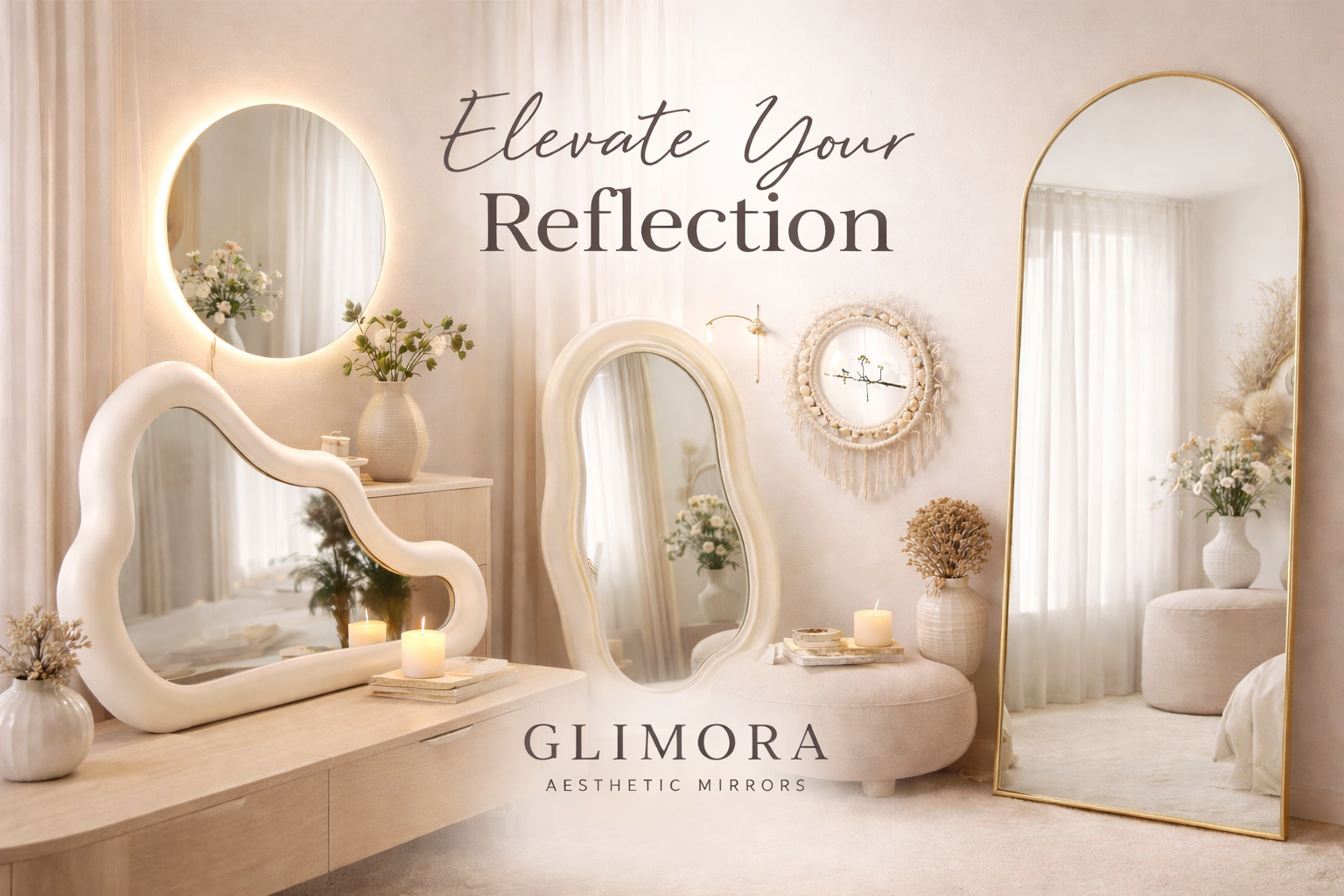 Handcrafted-inspired mirrors that add warmth, softness, and a calm aesthetic to any wall.